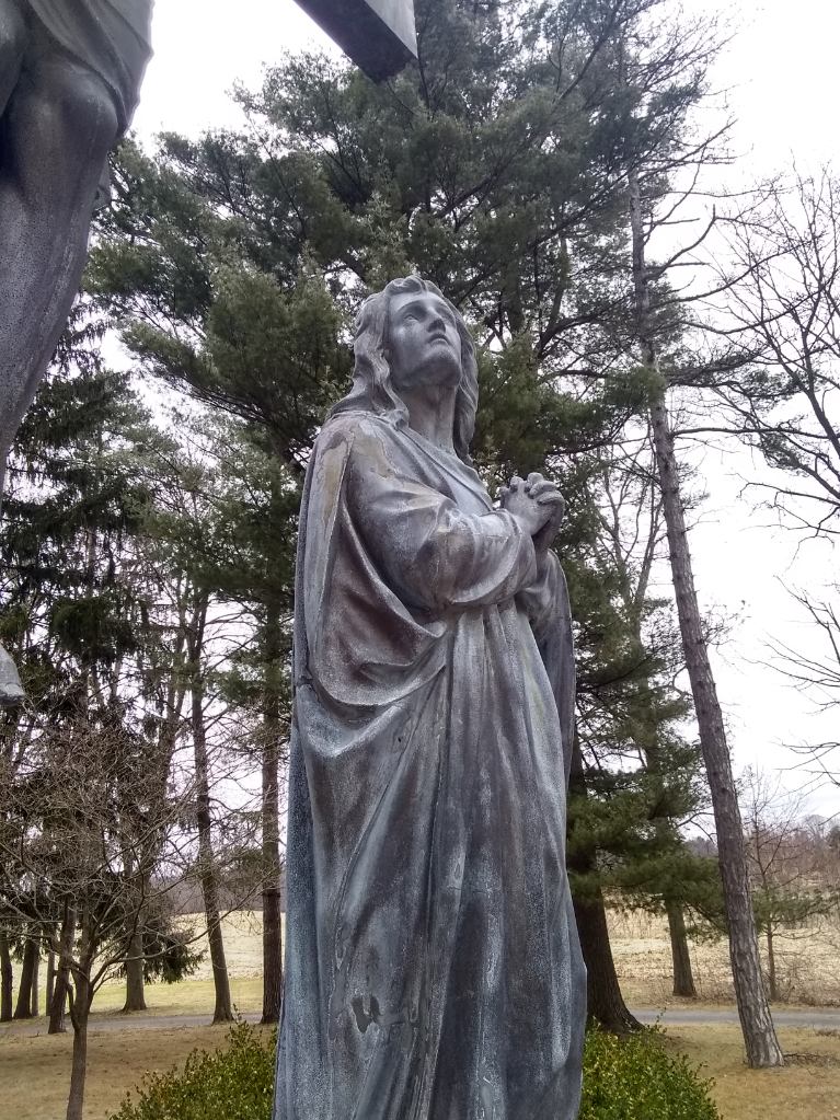 We were very pleased, especially to get what mom wanted and the price was exceptional. From there we started the concept for my sister’s stone. Though my brother-in-law was paying for hers separately, he asked that we choose it. For she is buried directly behind mom. They died 10 weeks apart. For hers, the process was much quicker, since stone, shape, thickness, type were all chosen prior. When it came to the art, I asked about a Mary image. Again, he had several, but one with her head, shoulders and praying hands with Rosary really stood out. Our rep made it work. It’s beautiful. And the cost $3900.00 plus tax and $1000.00 for the footer. My brother-in-law approved it. He scheduled his own appointment for payment. While there, he also had his name engraved on the back side. For our plots are in the shape of the Cross, so he will be buried behind my sister. All is paid for, so come Spring, footers will be poured. Shortly thereafter, their headstones will be installed, with a small blessing ceremony by our Priest.